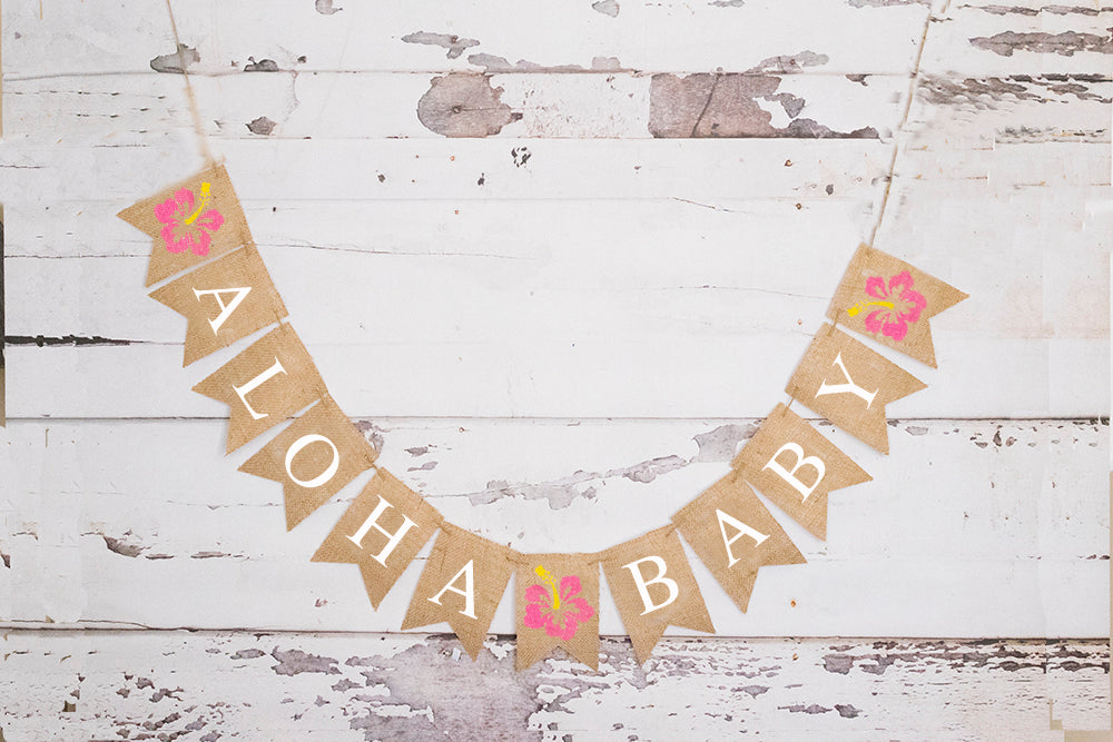 Aloha Baby Hibiscus Banner | Tropical Luau Hawaiian Baby Shower Decor