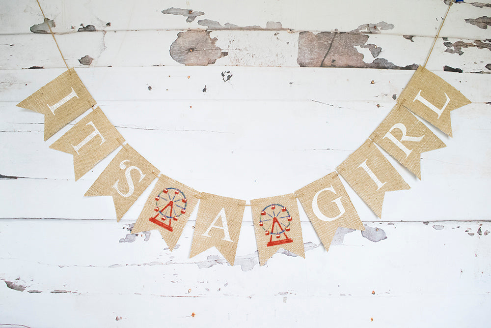 Carnival Baby Shower Decor, Ferris Wheel It's A Girl Banner