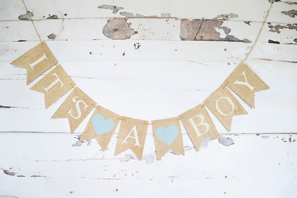 A baby shower banner. This beautiful banner announces the gender of your baby with the words It's a boy with white letters and baby blue hearts. Perfect for a baby shower or a pregnancy photo shoot. Congratulations on this special time in your life.