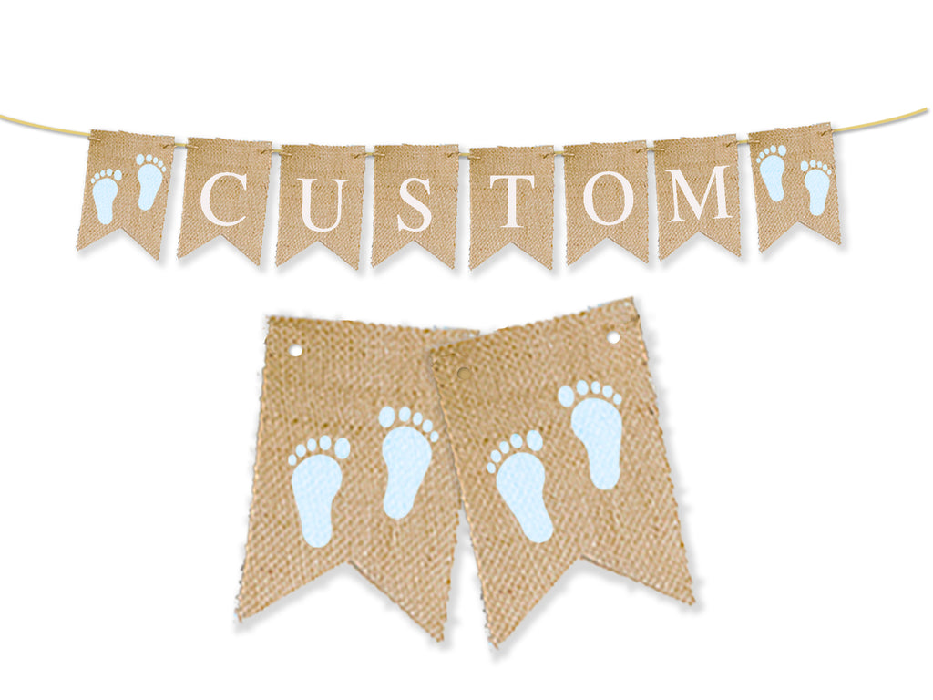 Custom Baby Shower Decor, Blue Footprint Personalized Banner