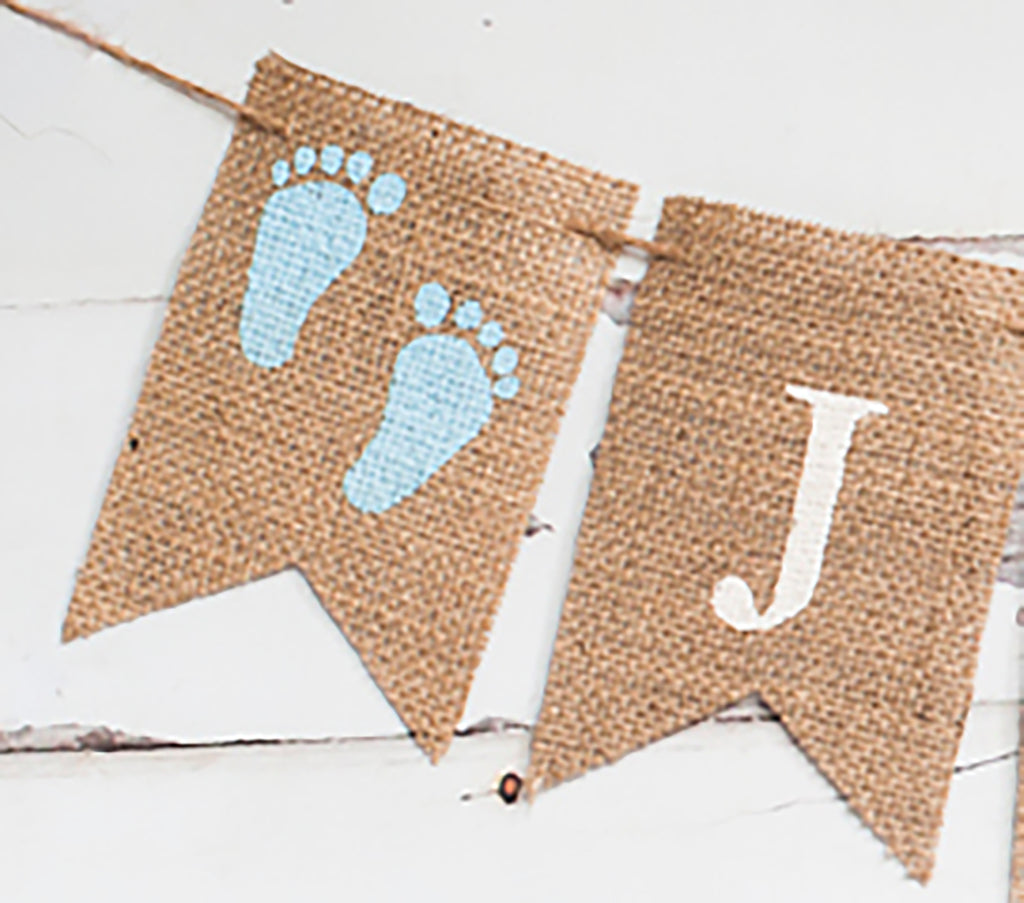 Baby shower decor. This custom banner is the perfect Nursery decor or Baby Shower banner, the options are endless. Cute Baby Footprints are painted in baby blue and your personalized name will be added. This baby footprint banner is stunning.