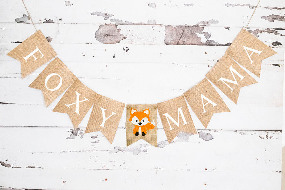 Woodland baby shower decor. This woodland-themed baby shower decoration is for a Foxy Mama and her soon to be little cub. Host your baby shower party in style with this one of a kind fox banner for the new Mama to be.