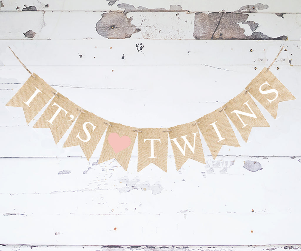 Pink Heart It's Twins Banner | Twin Baby Shower Decor