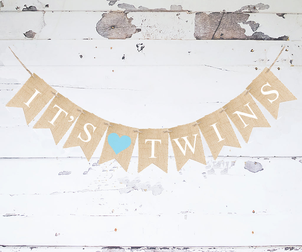 Blue Heart It's Twins Banner | Twins Baby Shower Decor