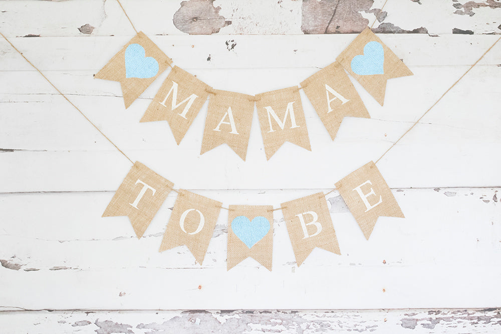 Mama to Be Blue Hearts Banner | Baby Shower or Gender Reveal Party Decor
