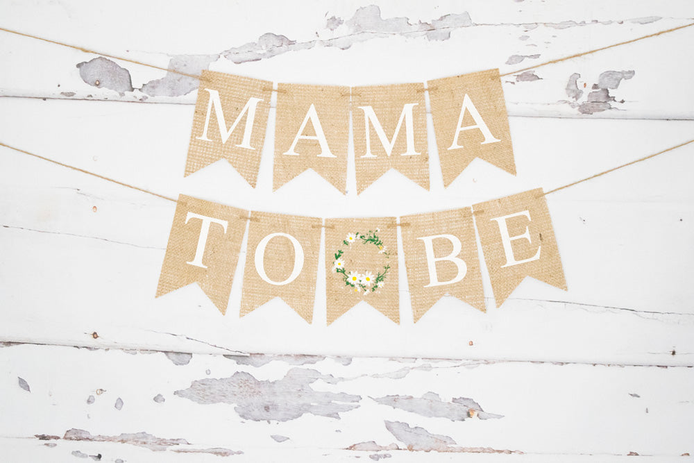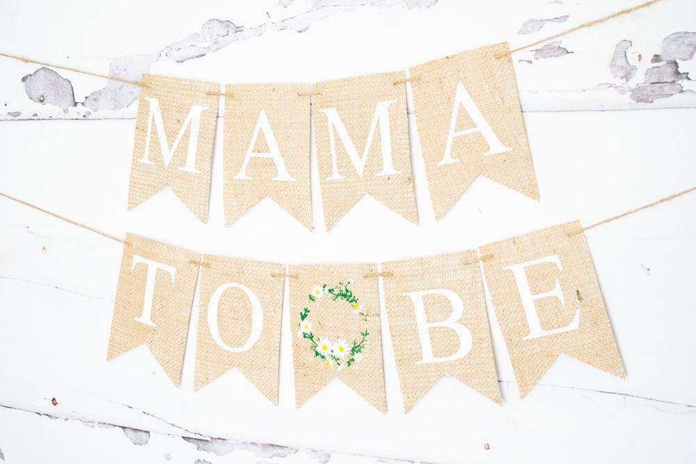 Celebrate the new arrival and the new Mama To Be with this gorgeous Baby Shower banner. Burlap is stenciled in white with the words Mama To Be and a delicate floral wreath as an accent. This is the perfect Baby Shower Banner.
