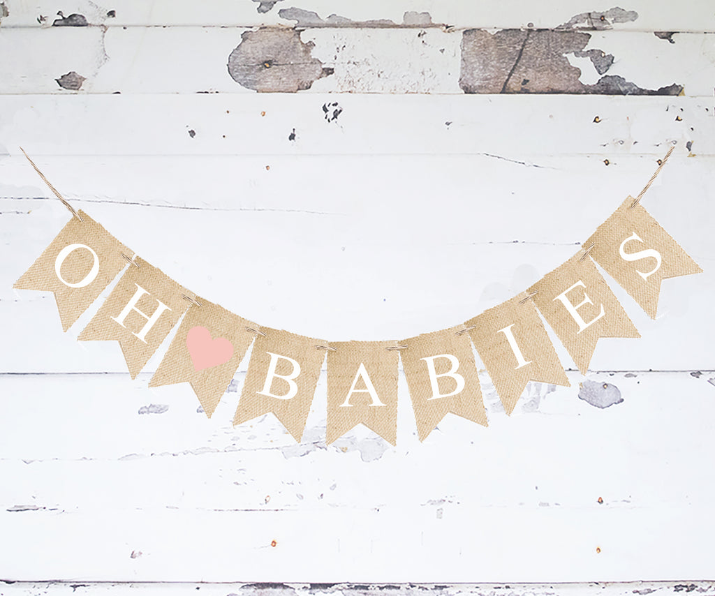 Baby Shower banner, Pregnancy Announcement decoration. An Oh Babies banner is perfect for your twin girls baby shower decor. Bright white lettering is accented with two baby pink hearts. Great for a gender reveal or twin reveal announcement. Congratulations!