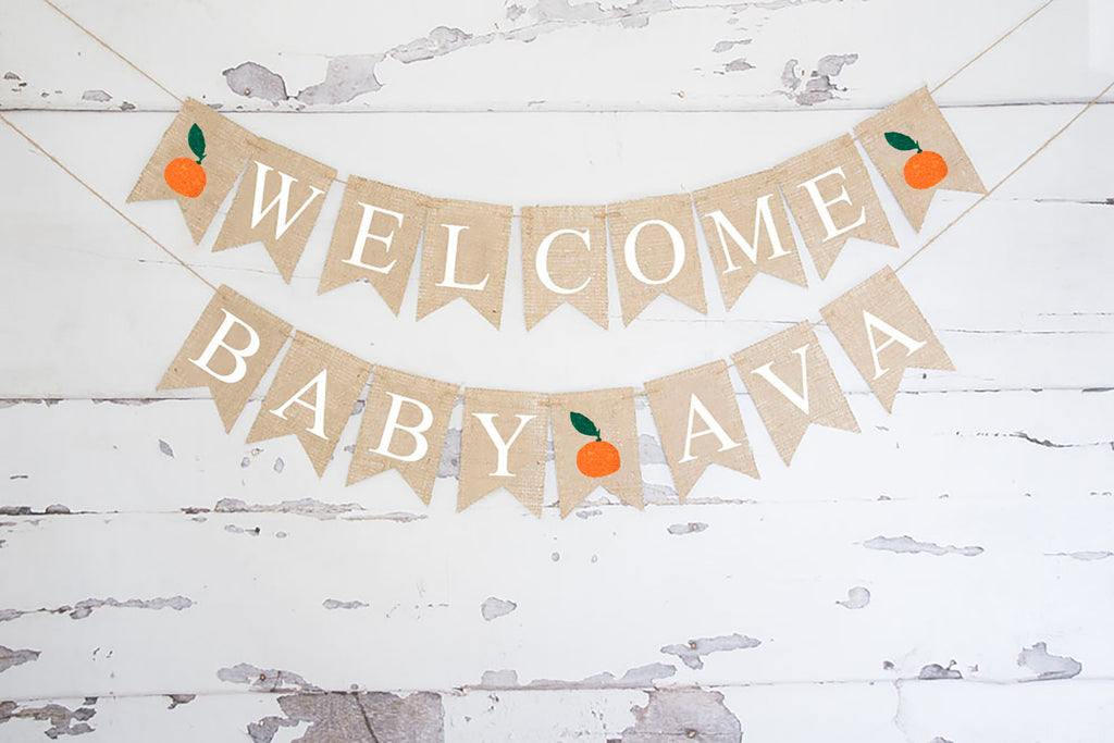 Tangerine Welcome Baby Banner | Baby Shower Decor
