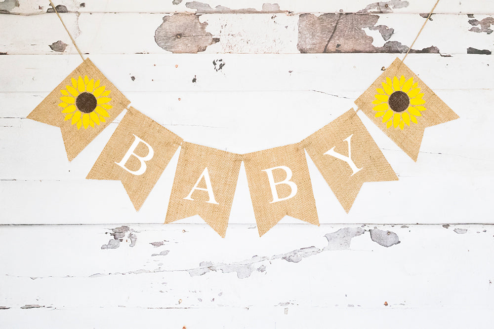 Sunflower Baby Shower Decoration or a Sunflower Wedding Banner. This vibrant and bold sunflower banner will be a great addition to a summer baby shower or summer wedding. Personalize this banner with the name or wording of your choice. Just use the drop-down menu on the right to select the number of letters you will need.