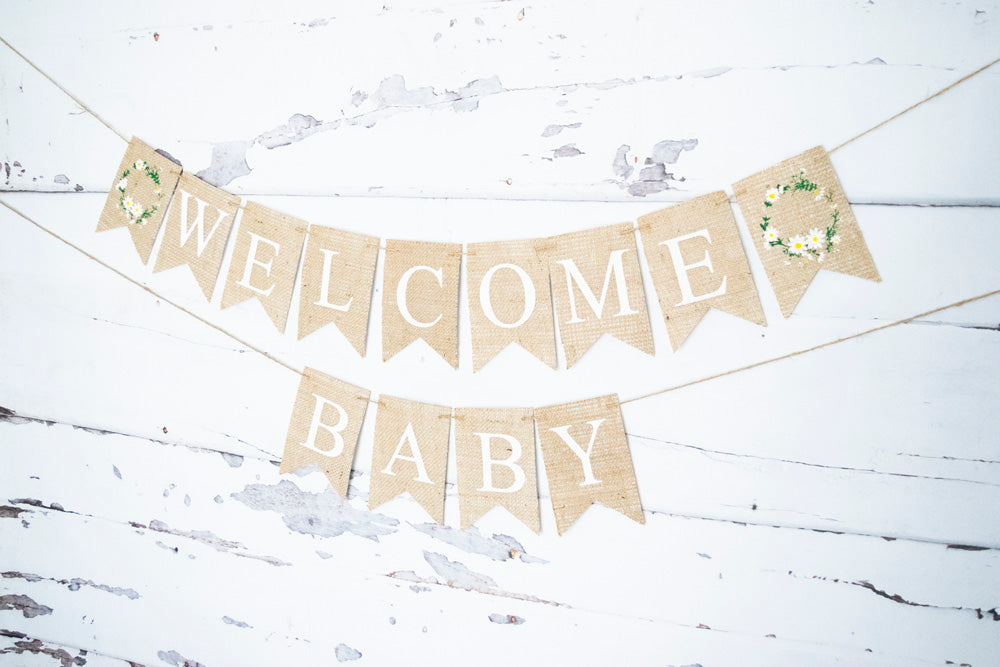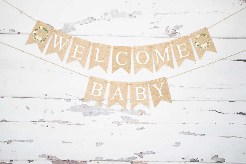 Welcome Baby Floral Banner for Baby Shower Decorations