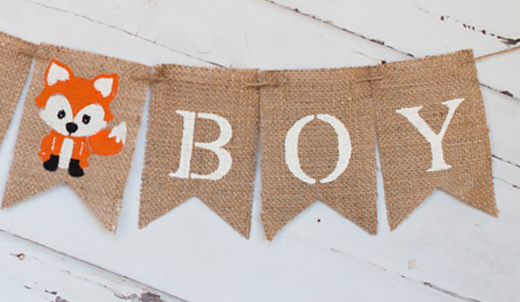 Woodland Party Decor. A woodland baby shower decoration with the words It's A Boy featuring the cutest fox between the words is the perfect baby shower banner. Perfect for a gender reveal party or woodland shower. Hang in your woodland-themed nursery after the baby shower.