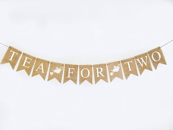 Swanky Party Box Tea for Two Burlap Banner | 2nd Birthay or Twin Tea Party Baby Shower Decorations $22.99
