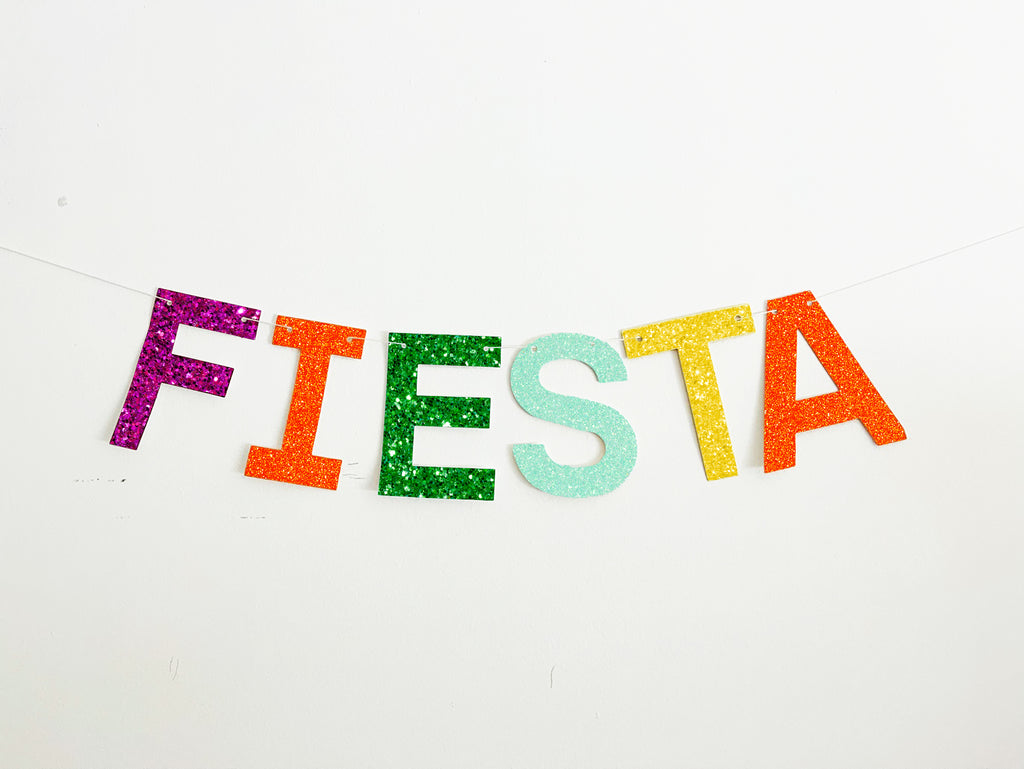 A stunning Fiesta Party collection. In beautiful multi color glitter colors this fun Fiesta garland set is great for a Fiesta Baby Shower or a Fiesta Birthday or Bridal Shower. Easy to assemble these Fiesta decorations include a multi-colored Glitter Fiesta Banner and Green Glitter Cactus banner. You can purchase both banners together or each banner individually. See what's included below.