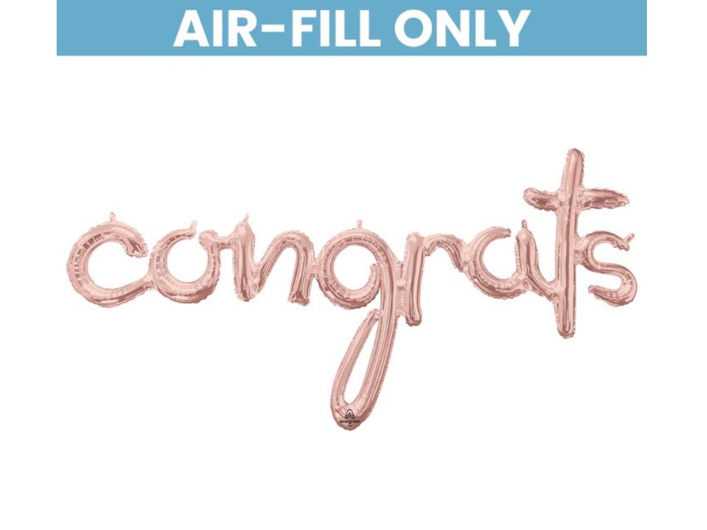 A stunning Congrats balloon in rose gold. This script balloon that spells the word Congrats is perfect for any celebration, wedding photo prop, graduation celebration or engagement party. It measures 56 inches and is great for your party decor. Please note that this balloon does not float and you should use air to fill. Helium is not recommend for this balloon.