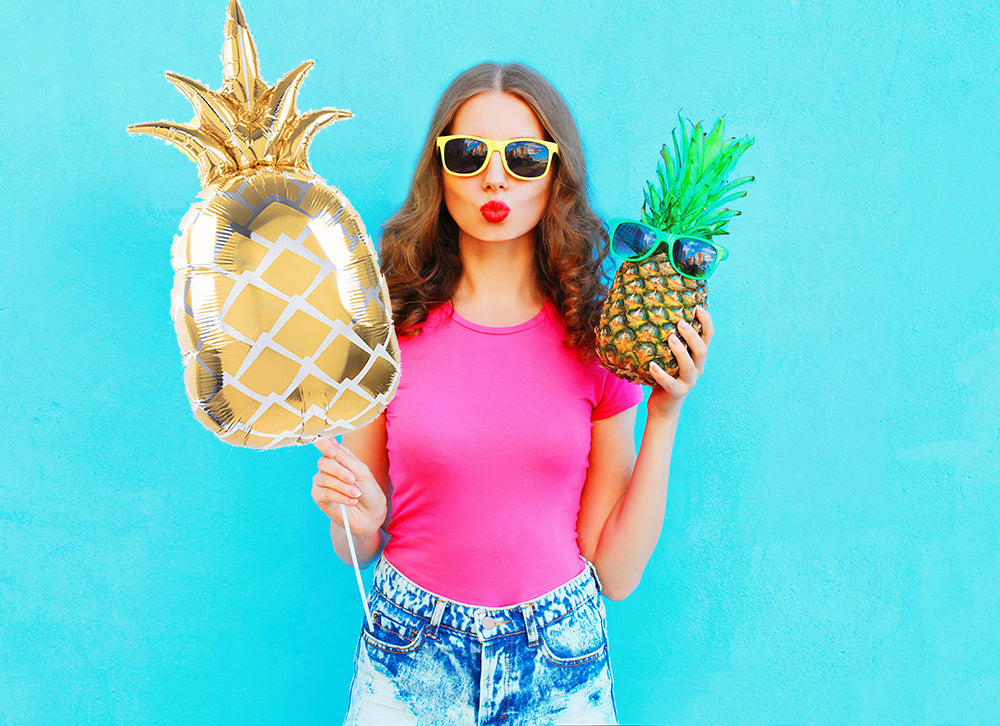 A Foil Pineapple Balloon. Add some fun to your pineapple party this summer with this vibrant foil pineapple balloon. Fill with helium and add this pineapple decoration to your next summer party.
