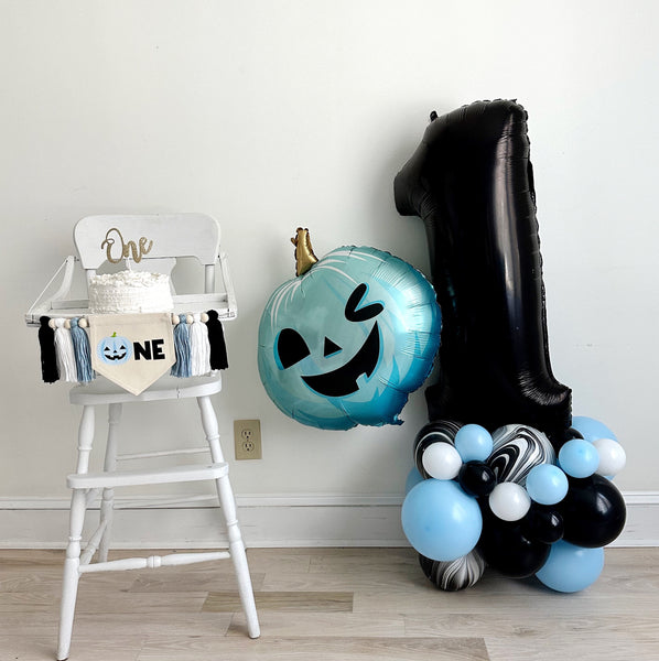 Swanky Party Box Halloween 1st Birthday Party Decorations | Jack O Lantern First Birthday | Blue Pumpkin High Chair Banner No reviews from $13.99