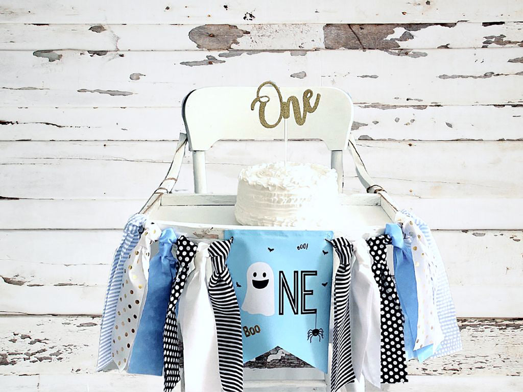 FINAL SALE Blue and Gold Halloween 1st Birthday Highchair Banner