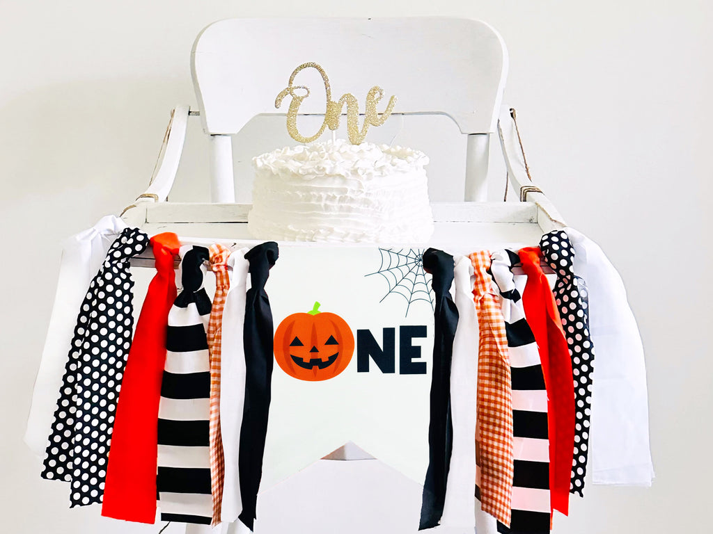 FINAL SALE Jack-O-Lantern One Highchair Banner | Halloween First Birthday Decorations