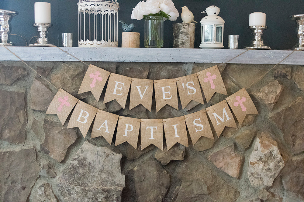 Each custom baptism name banner is made in the USA and our burlap is backed to prevent fraying.