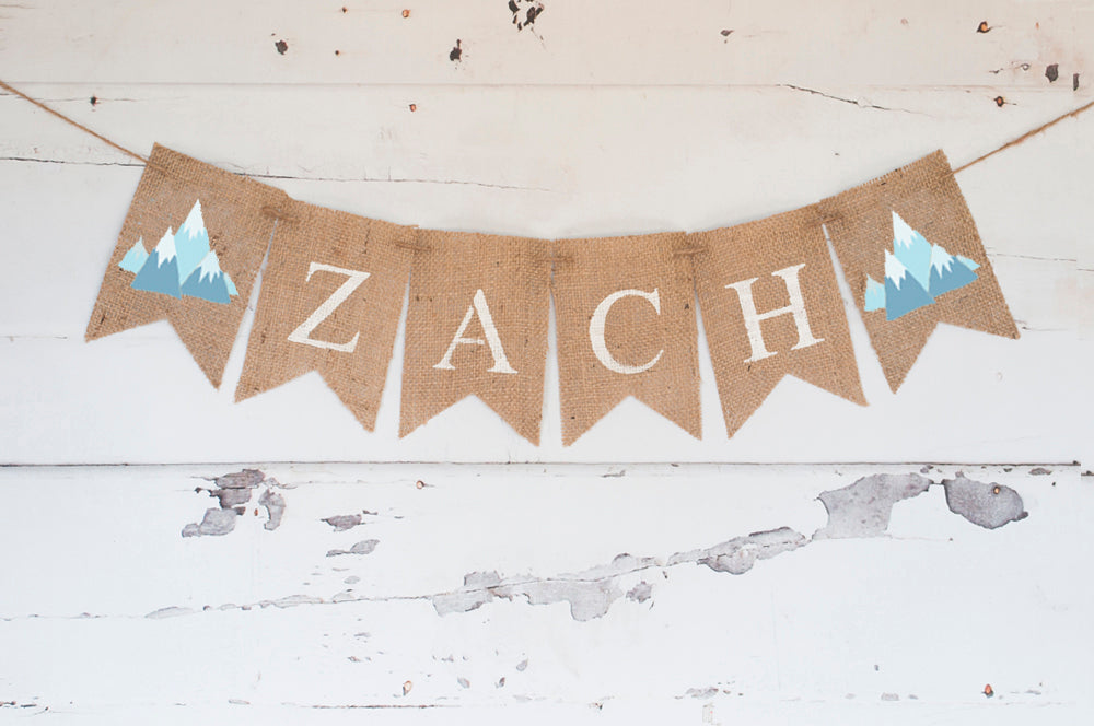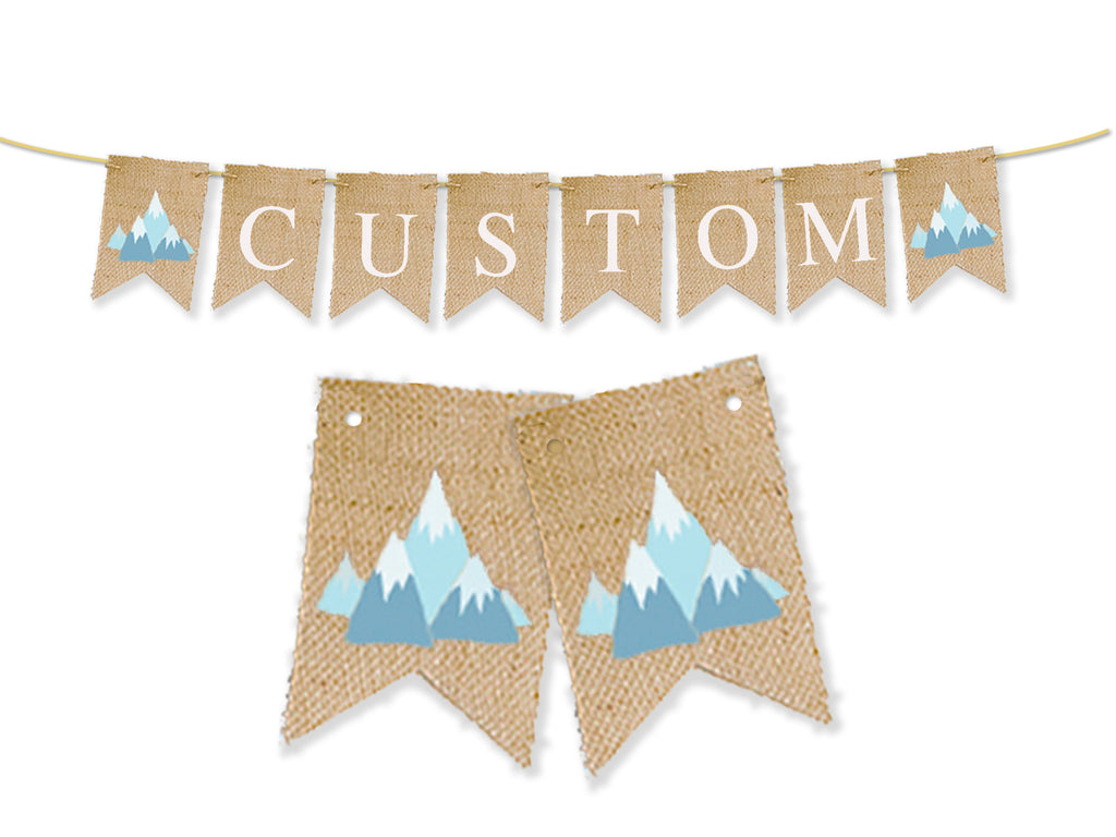 A beautiful snowy mountain banner, great for your adventure-themed Baby Shower, in your Baby's Nursery or at a Birthday Party, the uses are endless.