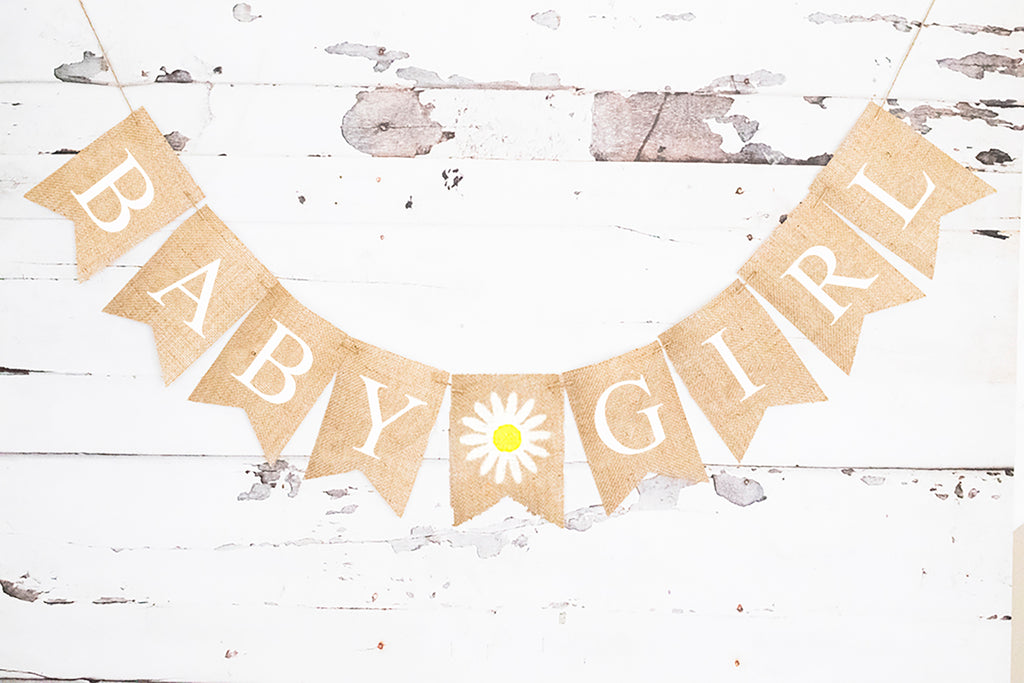 Daisy baby shower banner, Nursery Decorations. Perfect for a spring or summer baby shower or a nursery decoration, personalize this banner with the name of your choice. Just include the name in the notes at checkout. Count the number of letters of the name only and use the drop-down menu on the right to select the quantity.