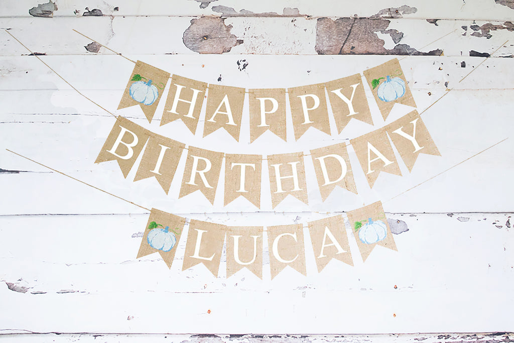 Birthday Decor, Personalized Blue Pumpkin Happy Birthday Banner