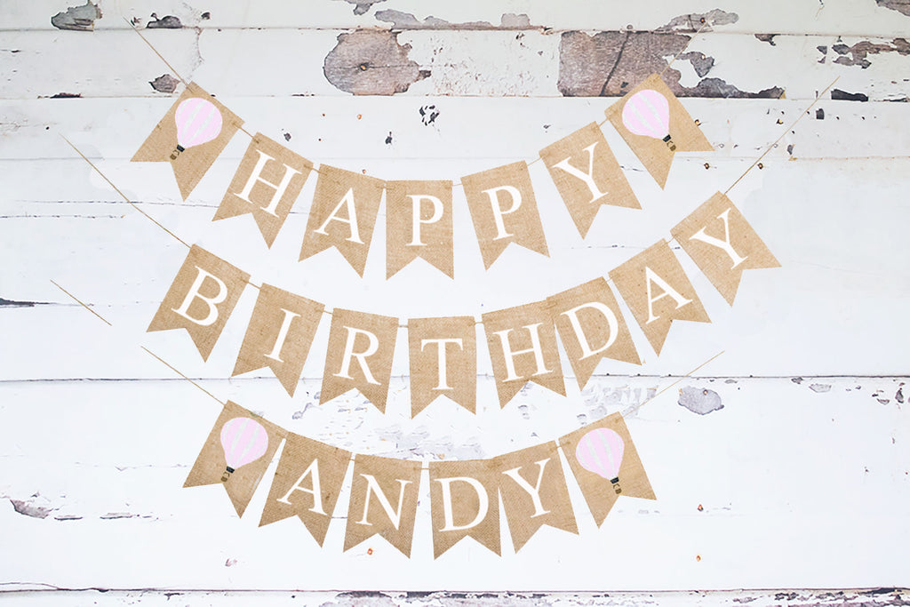 Personalized Happy Birthday Banner | Pink Hot Air Balloon