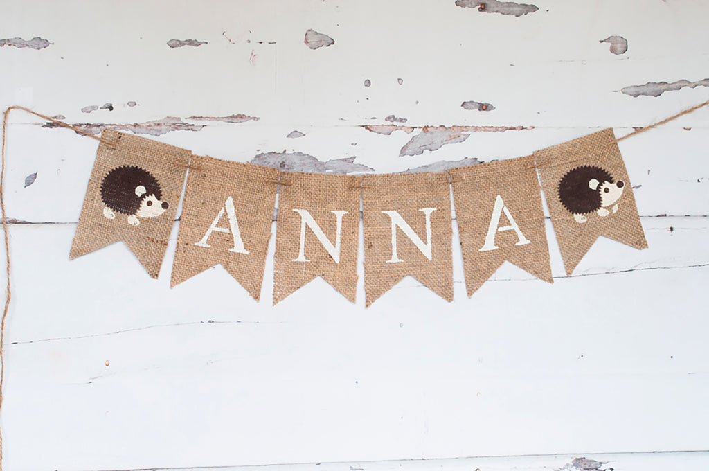 Custom Woodland Decor, Hedgehog Personalized Banner
