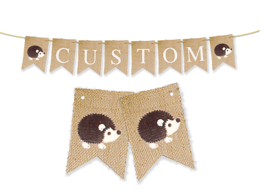 Count out the letters and then select from the drop-down menu to the right. Two Hedgehog flags are included free of cost at the beginning and end of your banner. Great for a woodland-themed shower.