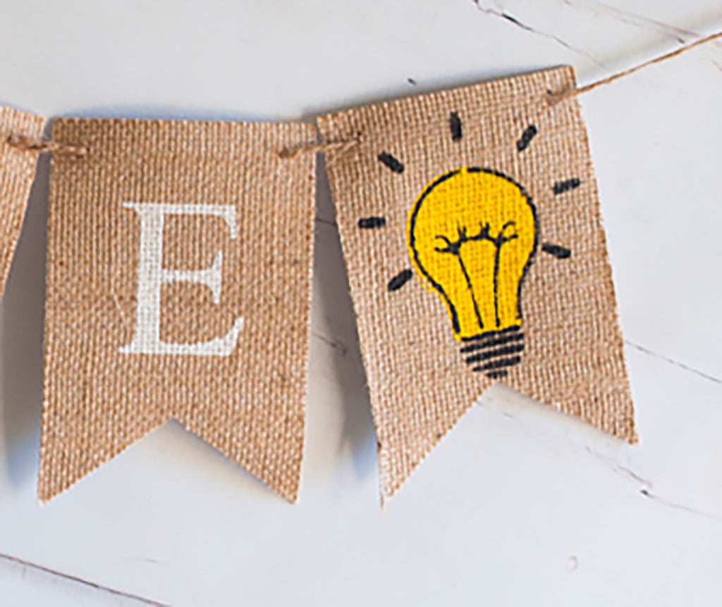 Great for any party and for all ages, this bright idea light bulb banner features a custom name and two illuminated light bulbs on the ends. It works great as a light bulb baby shower banner, personalized nursery decor, graduation party decoration, or anything else you want.