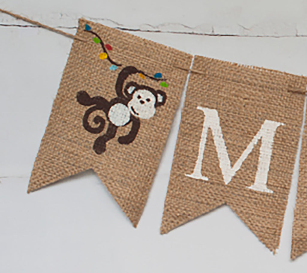 Count out the letters and then select from the drop-down menu to the right. Two little monkey flags are included free of cost at the beginning and end of your banner.