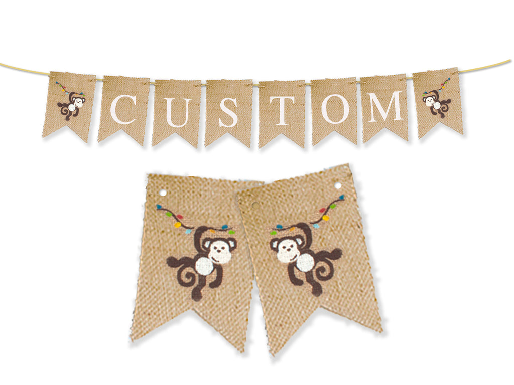Monkey Party Decor. Your Little Monkey will have their own custom banner. A cute little monkey banner that is personalized with your own wording use it for your Baby Shower, in your Baby's Nursery, or at a Birthday Party, the uses are endless.