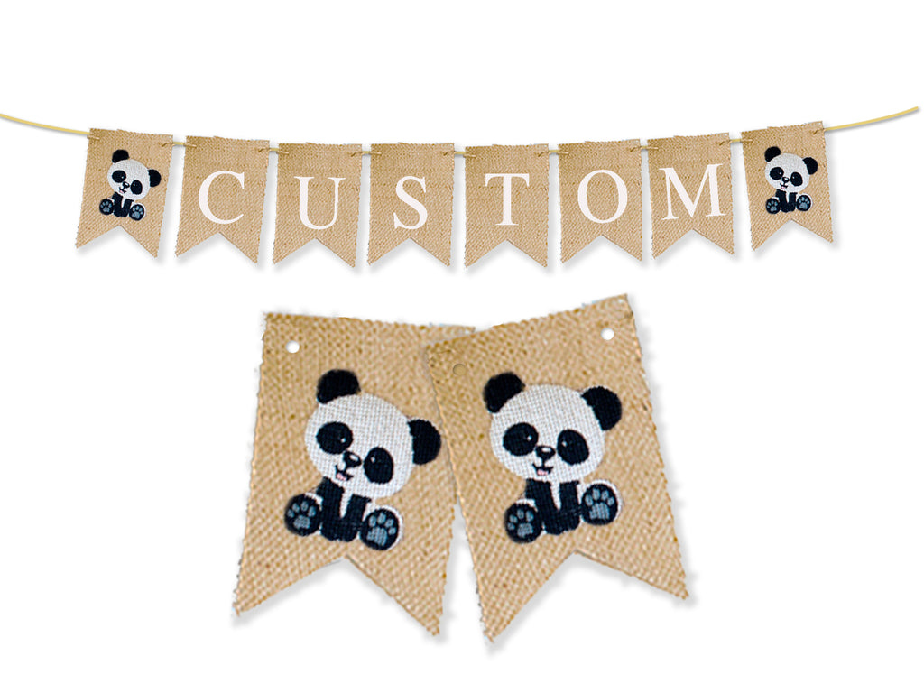 Panda Party Decor. This gorgeous panda banner can be customized for any panda-themed party or as part of your panda nursery decor, featuring two cute pandas on the end flags and your personalized details in between. This zoo banner makes a great panda party decoration and a nice personalized baby banner.