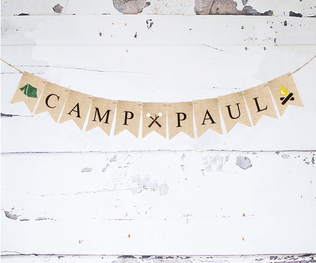 Welcome to Camp! This is a perfect addition to your opening camp festivities! Great for a campsite or lake house as well. Black lettering is paired with a campfire, marshmallow, and bright green tent to go with the camping theme.