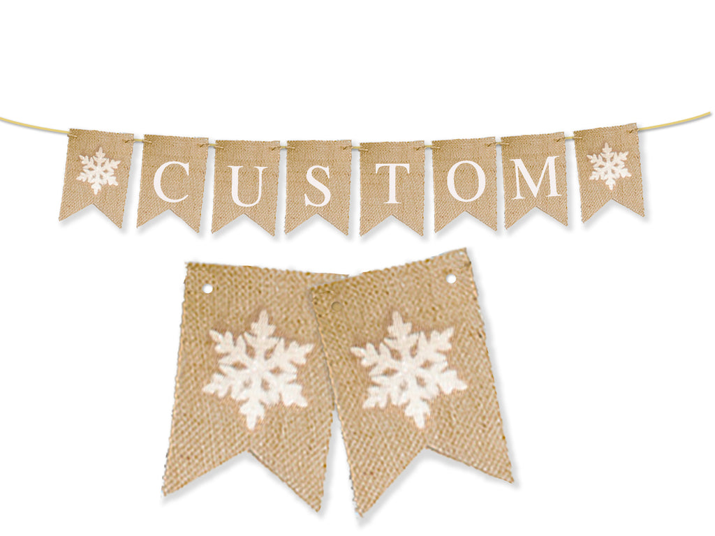 Winter Party Decor. Personalize this winter banner with the name or wording of your choice, we stencil snowflakes on the first and end flags. Perfect for a winter birthday party, a Christmas party or Baby Shower or your Baby's Nursery Decor, the uses are endless.