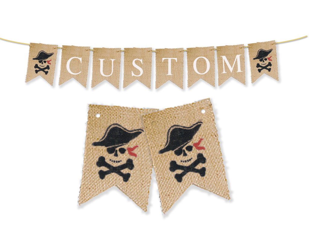 Pirate Party Decor. Shiver me timbers it's a pirate birthday party banner. Captain Hook would be proud of these pirate flags, just add your own custom wording, perfect for a pirate birthday party or Jake and the Neverlands or a Pirates of The Caribbean Party.
