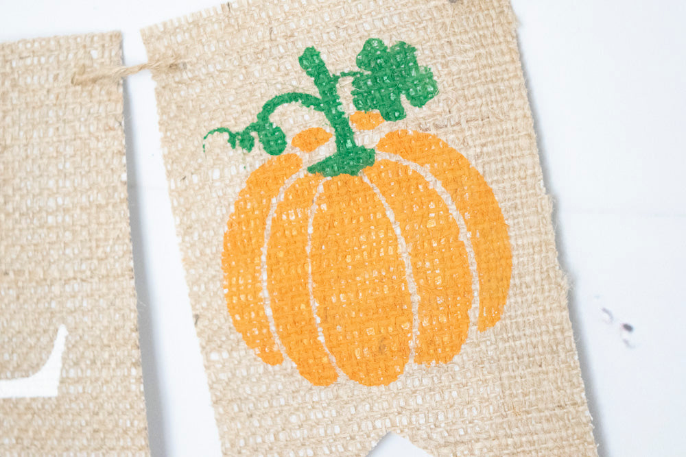 Custom Pumpkin decoration. A pumpkin-themed decoration, perfect for your Baby's Nursery or at a Birthday Party, the uses are endless. A bright orange pumpkin is painted on burlap for that rustic look.