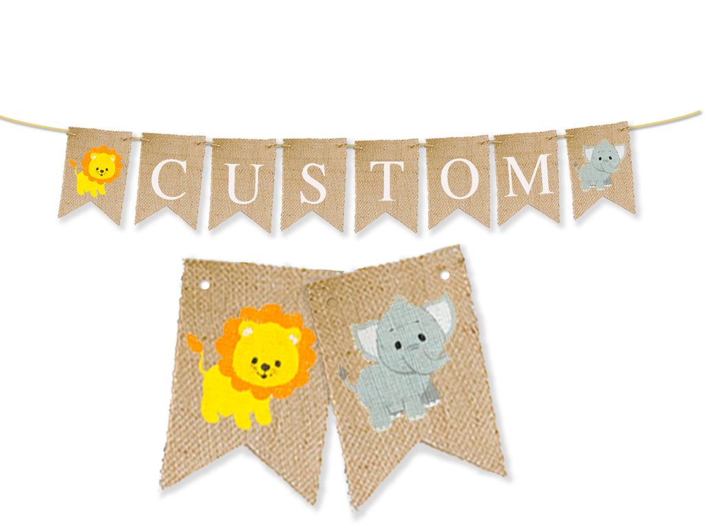 Safari birthday decor, Jungle party decorations. Perfect for a Safari Party, this custom jungle banner is available with your custom wording. Brighten up your jungle-themed birthday party with this gorgeous lion and elephant party sign. Personalize it with the wording of your choice.