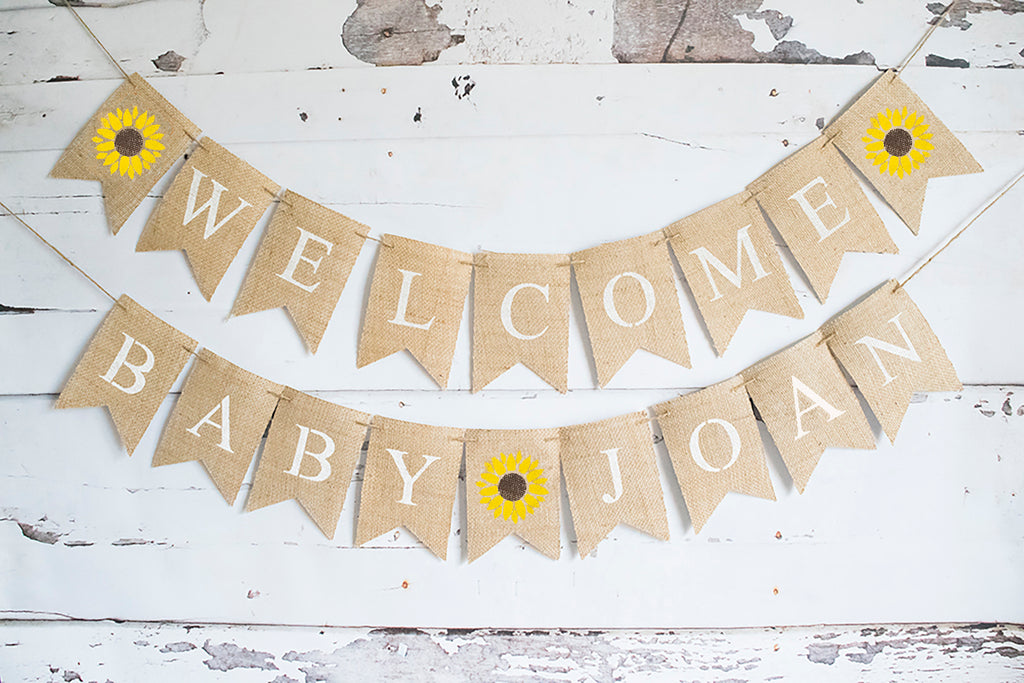 Sunflower Welcome Baby Personalized Banner | Floral Baby Shower or Gender Reveal Party Decor