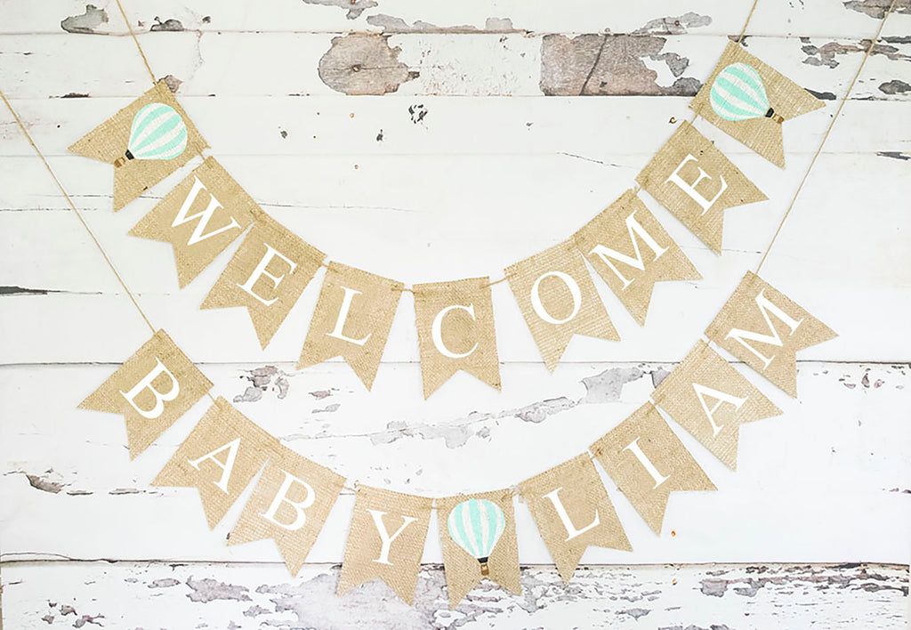 Baby Shower Decor, Welcome Baby Hot Air Balloon Personalized Banner