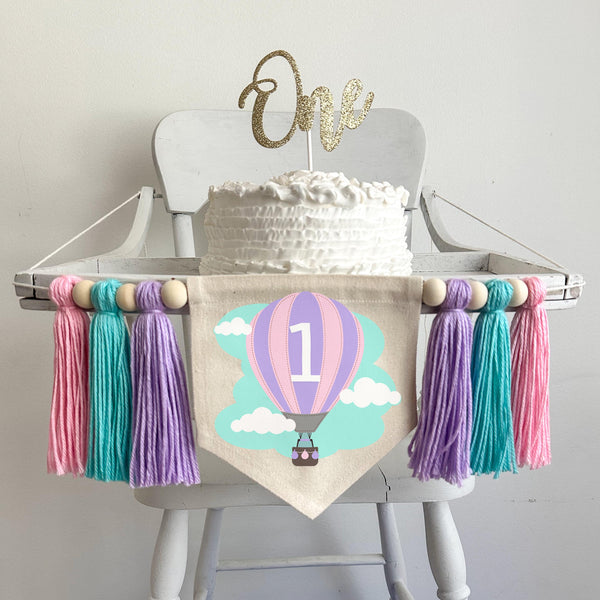Swanky Party Box First Birthday Party Decorations | High Chair Banner | Hot Air Balloon Decoration $14.99