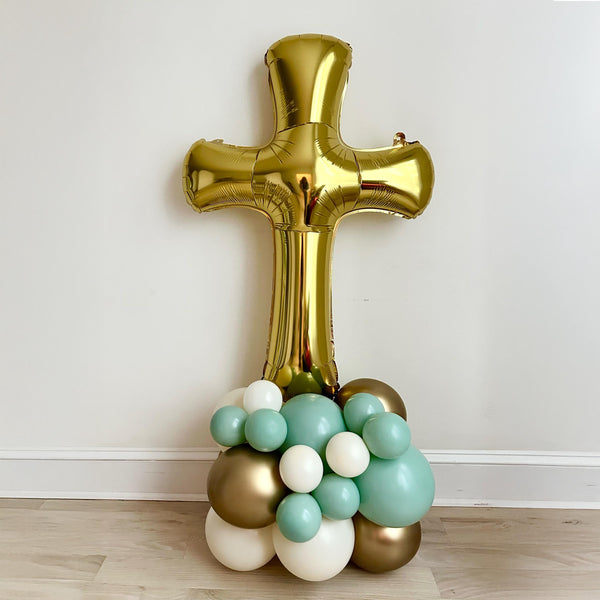 Swanky Party Box Large Gold Cross Balloon Tower | Mint & Gold Christening Decorations No reviews $24.99