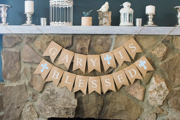Swanky Party Box Blue Cross Personalized Blessed Banner | Baptism or Christening Party Decor from $28.80