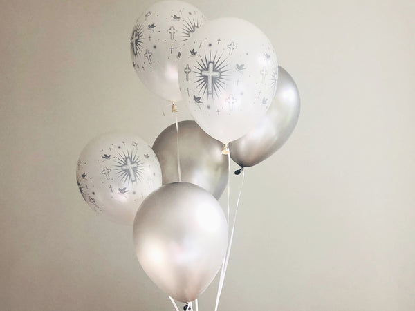 Swanky Party Box Christening Decorations | Holy Communion Decor | Cross and Dove Balloons Set of 6 $5.99
