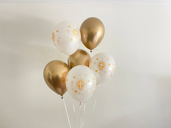 Swanky Party Box Christening Decorations | Holy Communion Decor | Gold Cross and Dove Balloons Set of 6 $5.99
