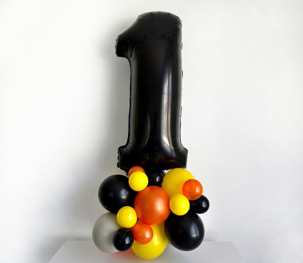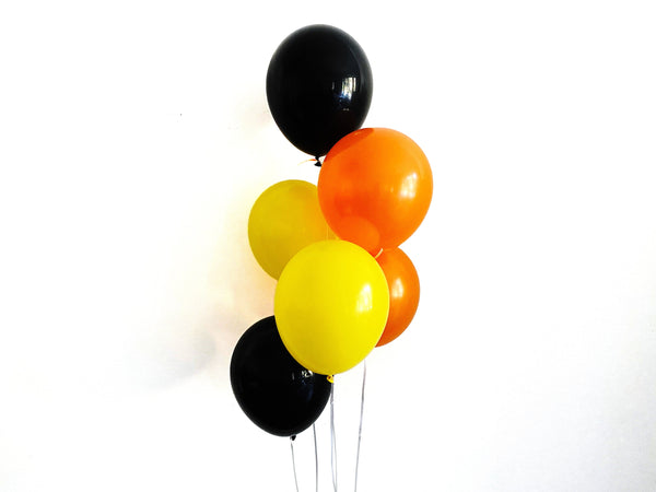 Swanky Party Box Black, Orange, and Yellow Balloon Bouquet, Halloween Balloons, Construction Birthday Party Decorations, Balloon Bouquet Set of 6 $5.99