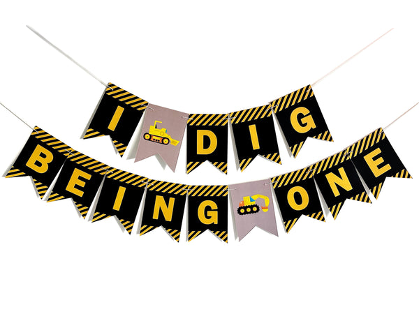 Swanky Party Box I Dig Being One Construction 1st Birthday Banner | Highchair Decoration | First Birthday Party Sign from $13.99