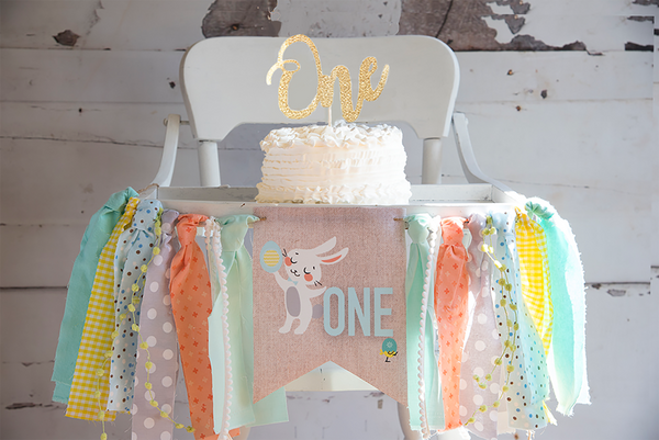 Swanky Party Box FINAL SALE Bunny One Higchair Banner | Easter First Birthday Party Decorations $9.99