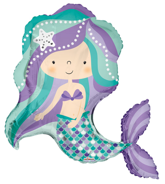 Swanky Party Box Mermaid Balloon, Summer Party Décor, Beach Party Prop, Mermaid Birthday Foil Balloon, Summer Birthday Theme $3.63