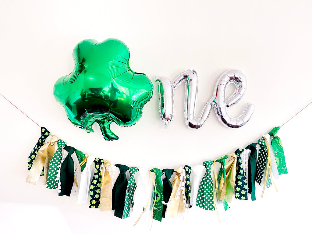 Silver St Patrick's Day First Birthday Decoration | Lucky One Balloons | St. Patrick's Fabric Garland